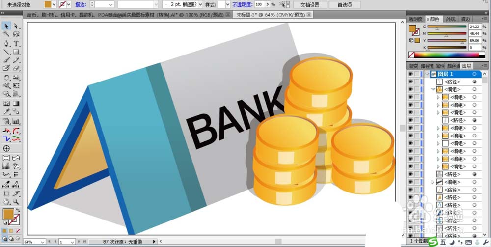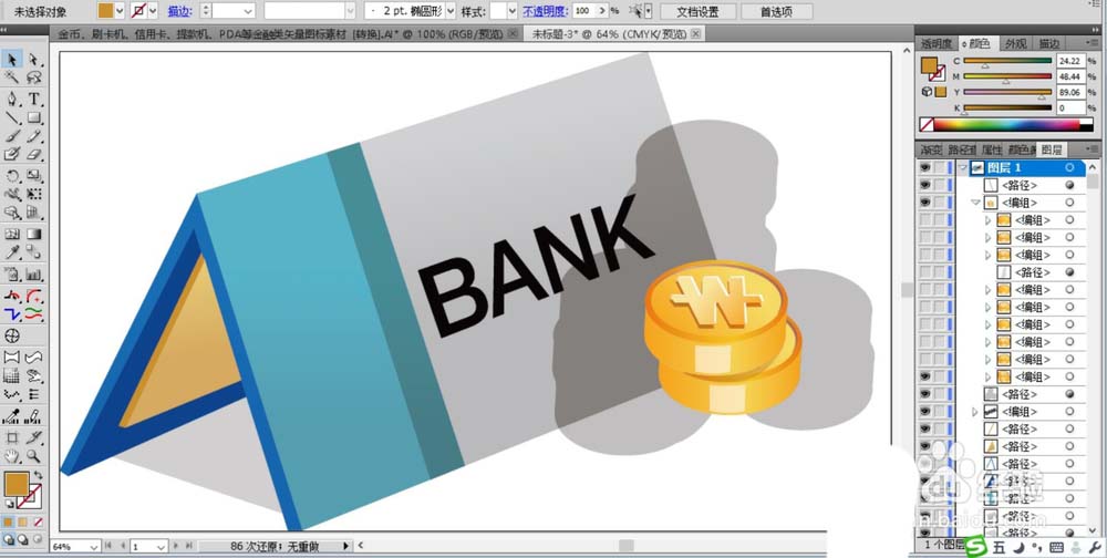 7、最后,我们把其它的金币路径一一用同样的方法进行填充,完成银行桌卡设计。