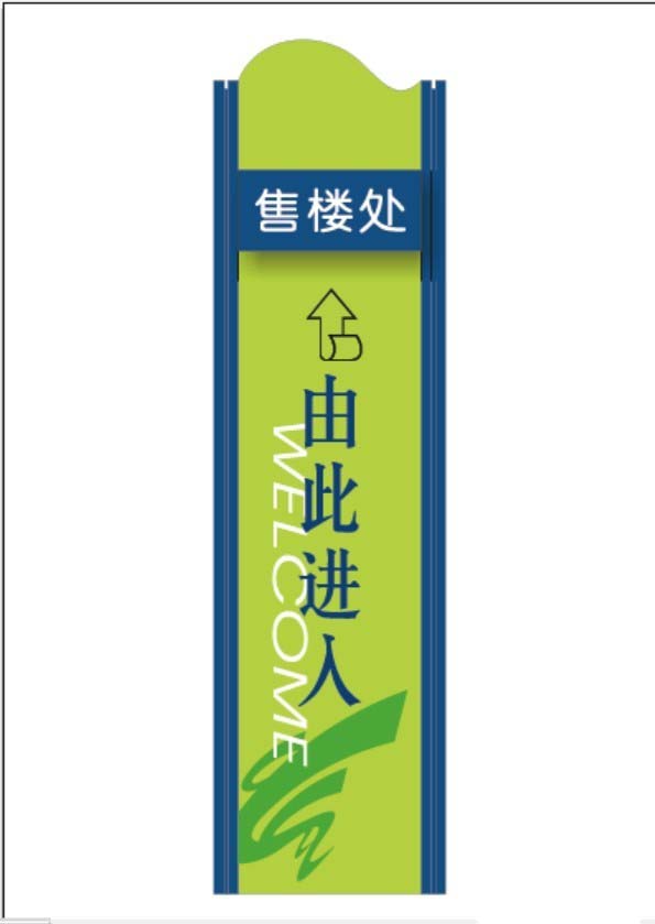 8、用蓝色填充标牌上面的竖排中文字,用白色填充英文字,完成售楼处标牌设计。