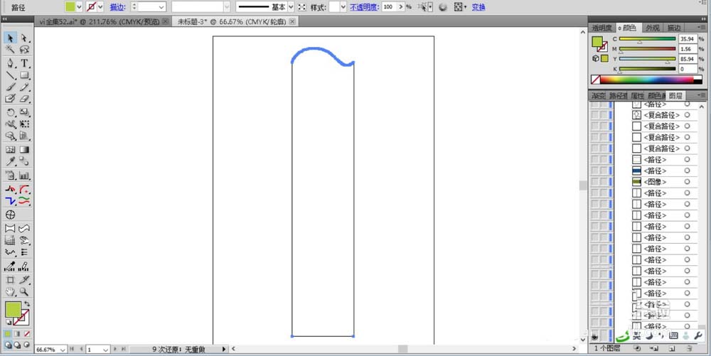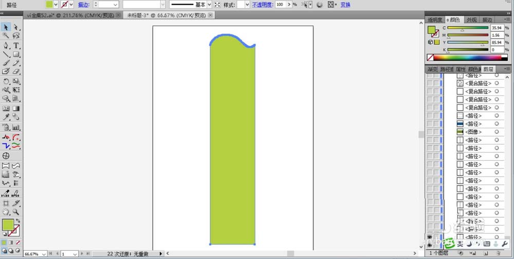 1、选择钢笔工具,我们画出标牌的曲边,还有三条直边。曲边用三个锚点来绘制与修整。