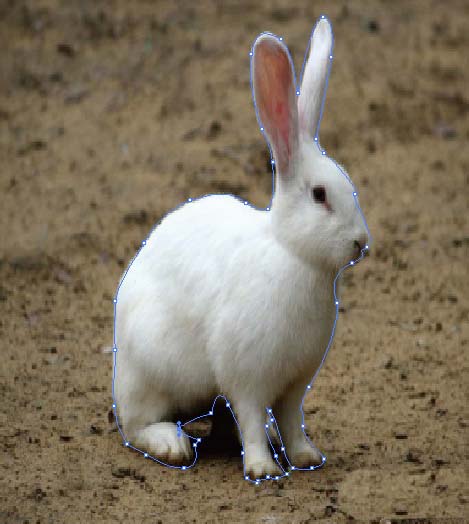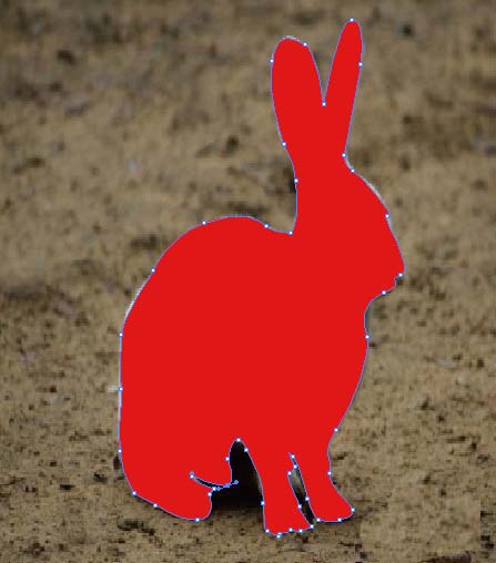 5、我们现在选择钢笔工具,把兔子的轮廓勾选出来,如图所示。不太贴合的地方可以添加锚点后,使用直线选择工具调整下。