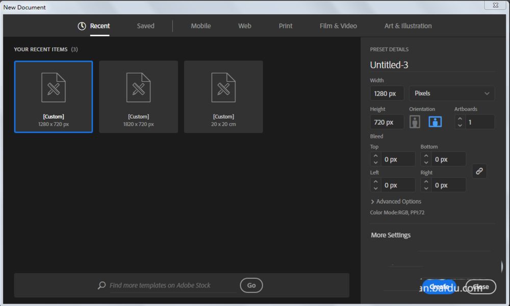 1、新建一个1280*720,颜色模式RGB的文档。