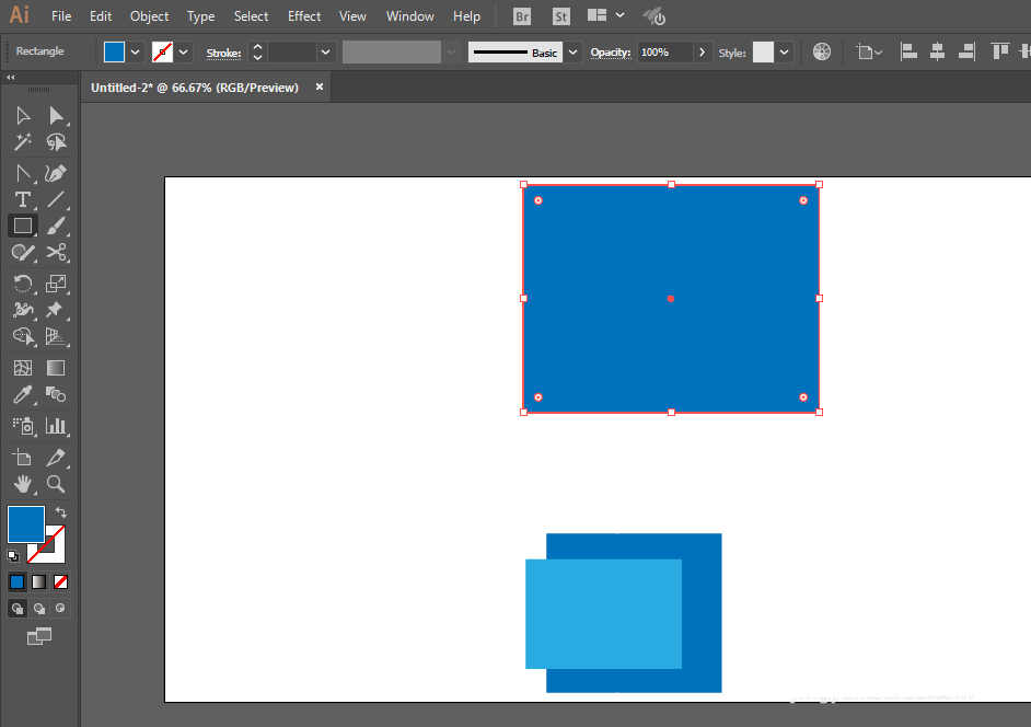 2、矩形工具绘制三个不同大小和颜色的矩形。