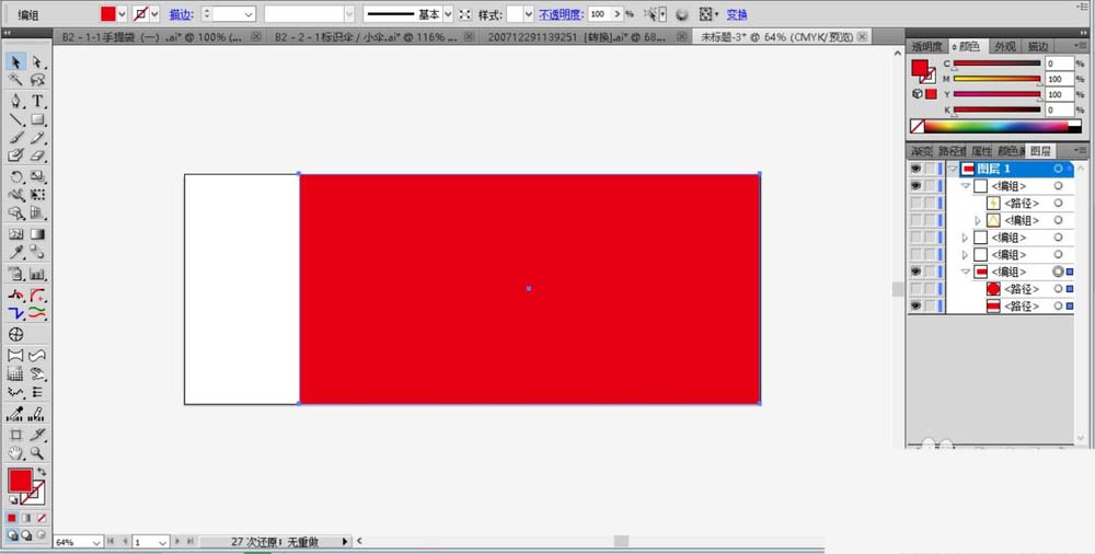1、选择矩形工具,我们画出一个长长的红色矩形,让矩形与标牌的长度相同。