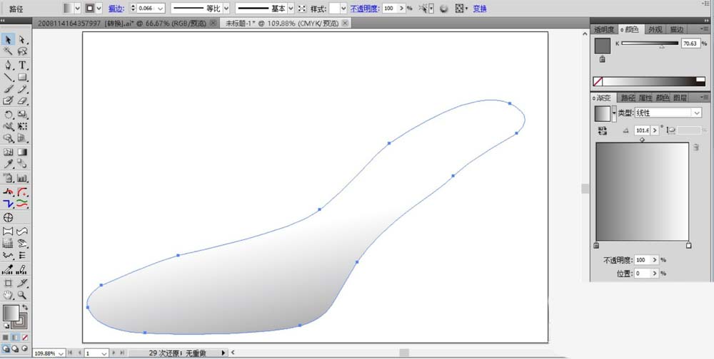 6、设置一个灰白色的渐变,我们用这个灰色的渐变填充凉鞋的鞋面路径。