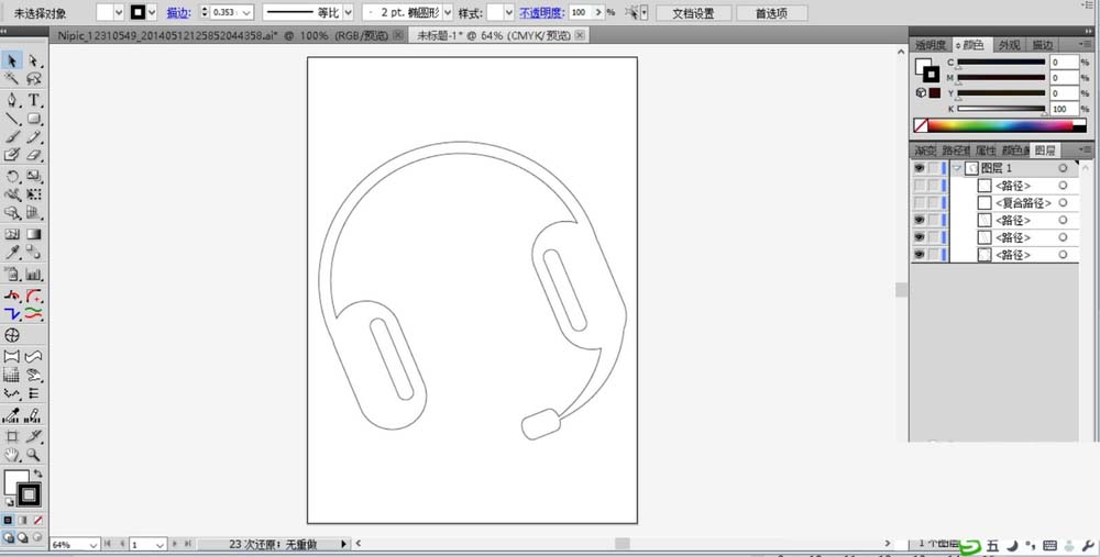 2、 我们用圆形与矩形绘制出耳机的形状,让各个结构的封闭路径结合在一起。