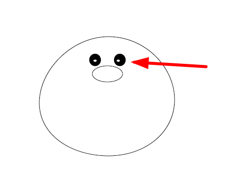 6、填充为黑色,然后在眼睛里绘出圆形小点,填充为白色,眼睛填充为黑色。