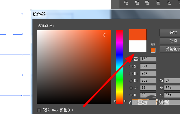 8、在弹出的颜色面板中选择我们需要的颜色,点击确定,如图。再次点击其他锚点,填色。