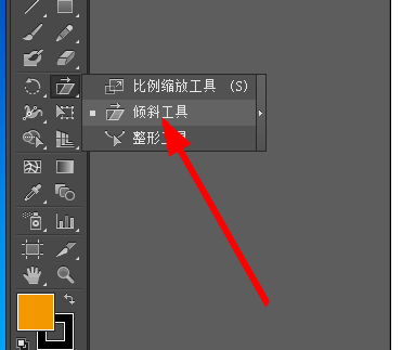 4、填充颜色便于和白色的面板区别,选择其中一个,选择倾斜工具,如图。