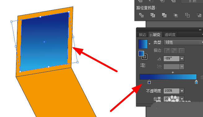 10、然后填充一个蓝色的渐变,另外一个矩形,按照同样的方式,放进去两个灰黑色的形状,如图。