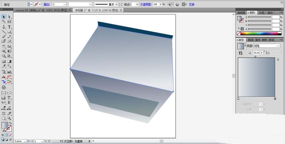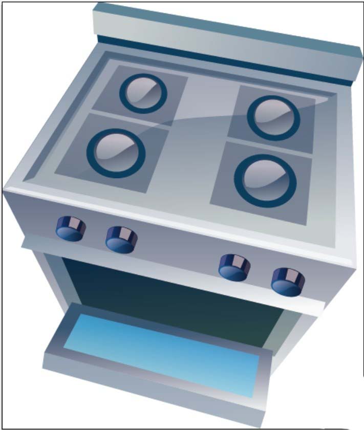 6、用灰白色填充煤气灶的顶端,用蓝灰色填充煤气灶的正面,用蓝黑色的渐变填充煤气灶的背面的暗光区域。