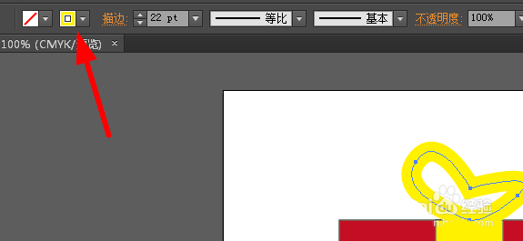 6、然后设置填充为无,描边为22像素,黄色。