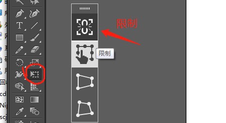 3、在工具栏中,点选自由变换工具,在选择限制图标,呈现锁链状态。