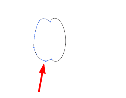 4、然后选择钢笔工具,点击空白处,然后再次点击一个点,不要松开转动手柄,得到弧形后松开,如此,绘制出如下图形,移动位置和椭圆连接在一起。