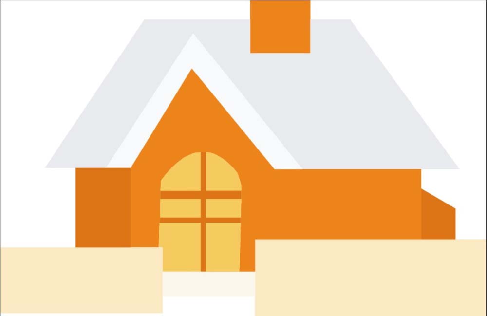 4、用灰色与灰白色搭配填充房子的屋顶结构,用淡橙色填充房子的篱笆墙。