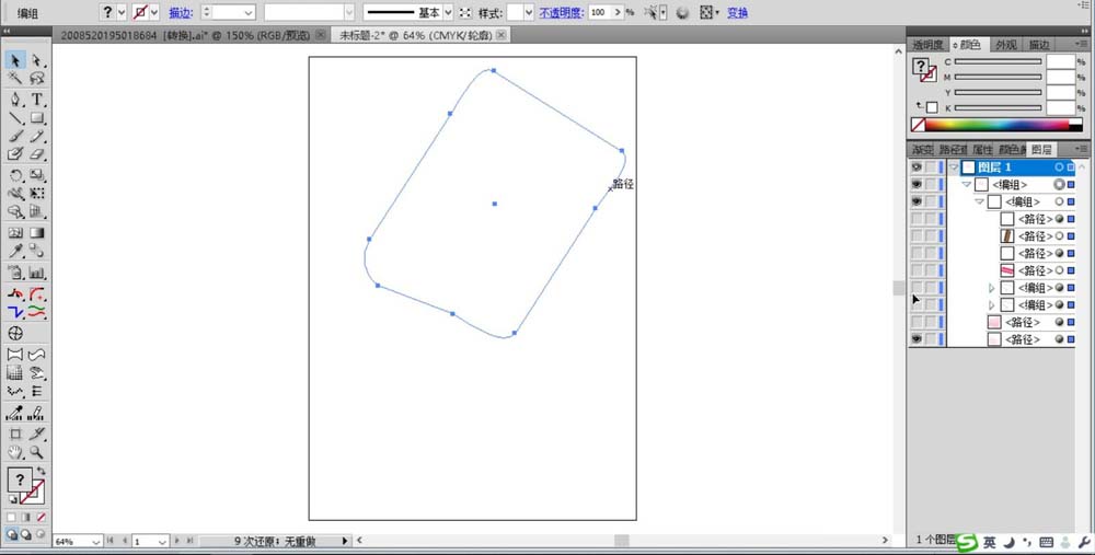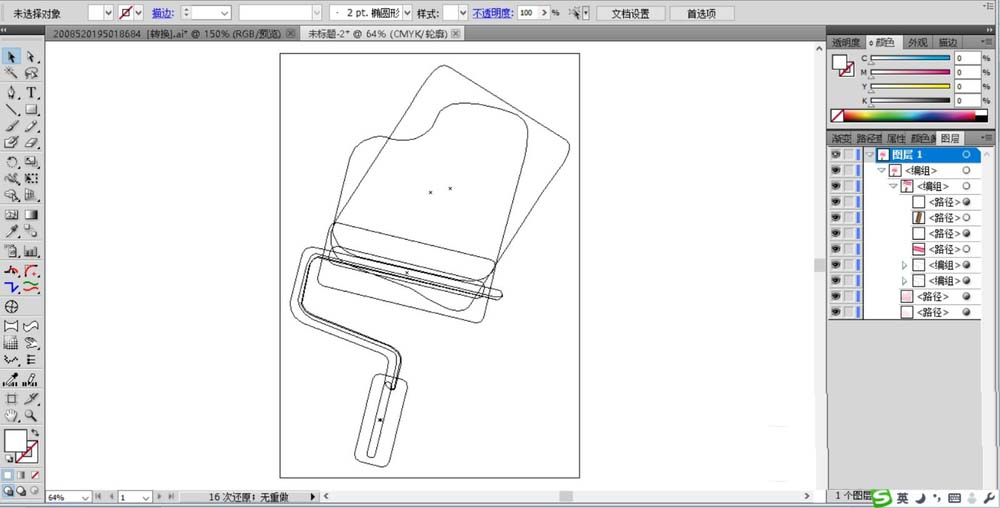 2、接着,我们画出痕迹的层次,再来画出油漆滚筒的弯杆的路径。