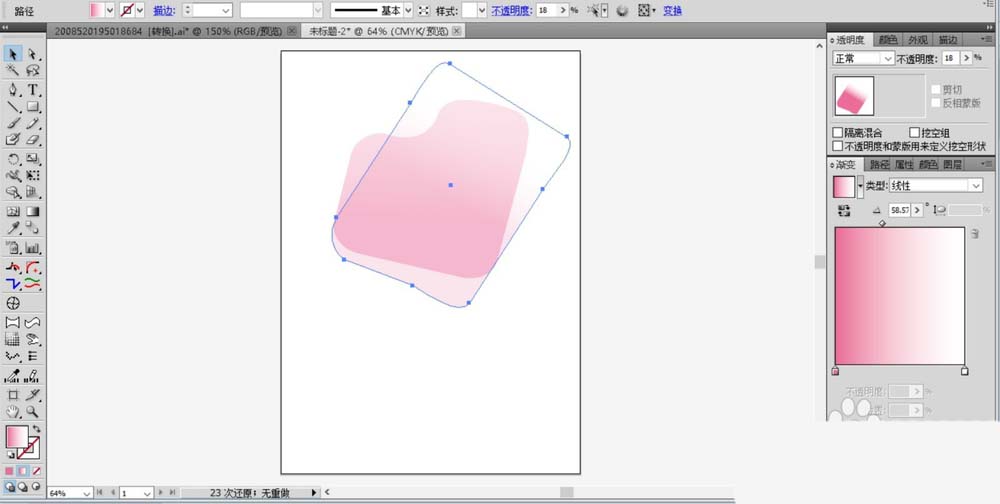 4、用粉红色的渐变填充痕迹方框,再用半透明的粉红色的渐变填充痕迹的阴影。