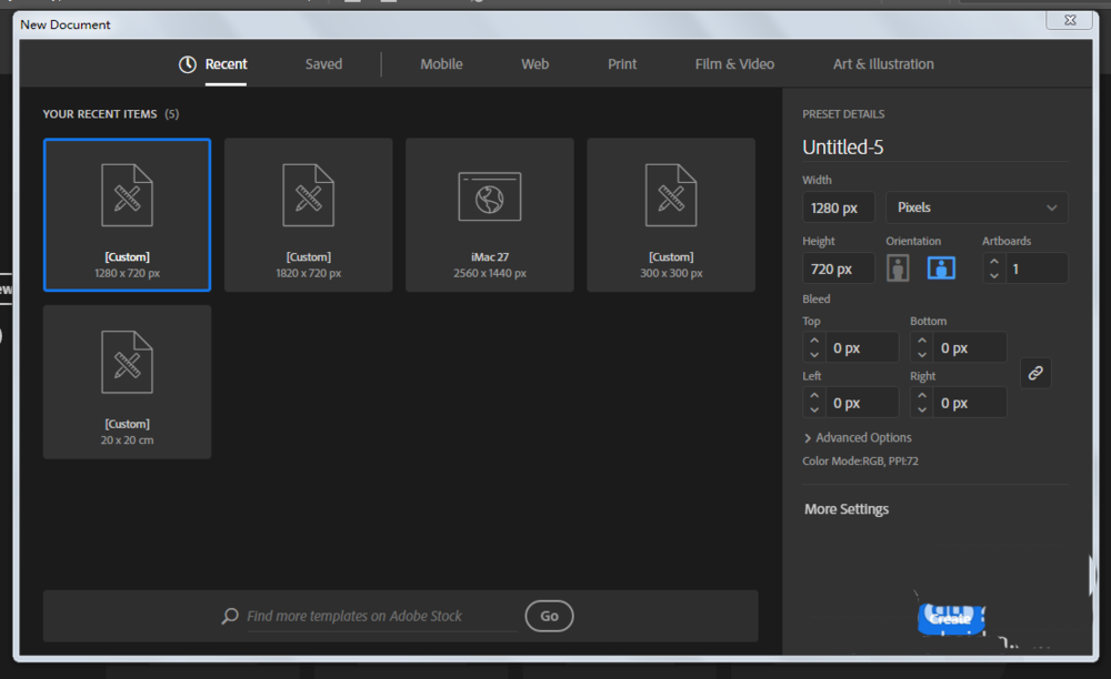 1、新建一个1280*720,颜色模式RGB的文档。