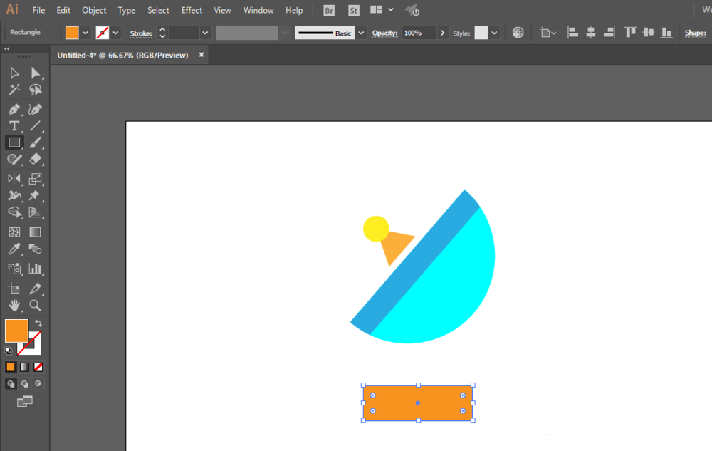 6、矩形工具绘制底部,直线选择工具调整锚点。