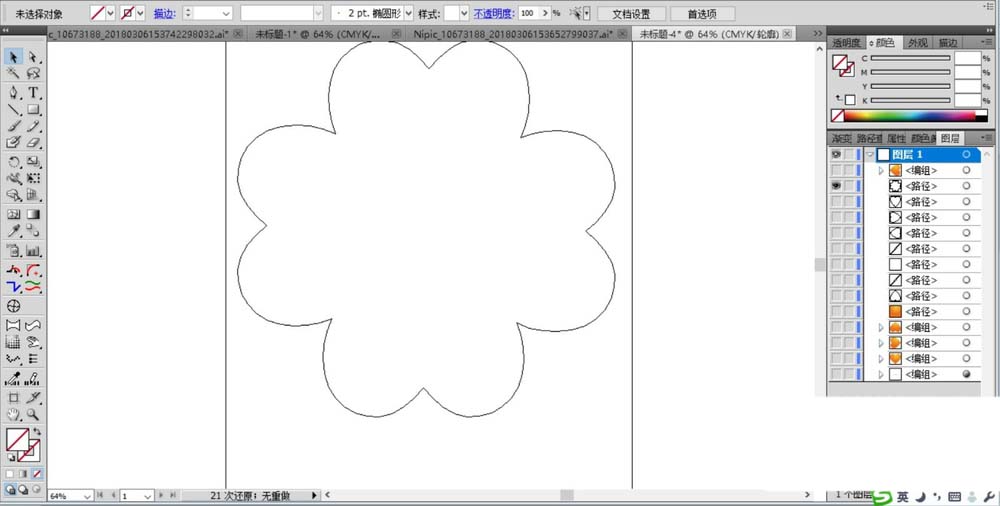 1、先用钢笔画出花朵的轮廓,我们可以使用圆形进行组合,也可以使用钢笔的锚点工具直接绘制。
