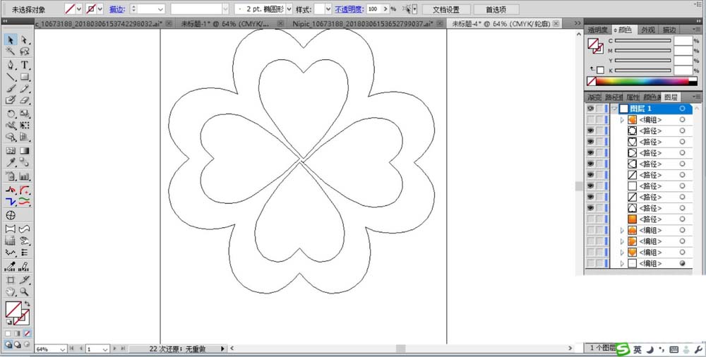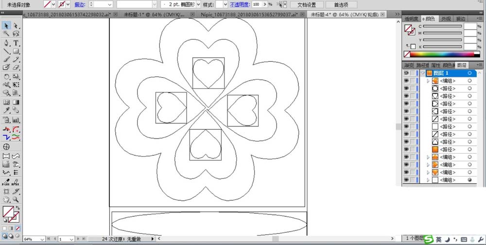 2、画出一个心形的路径,并复制到花朵的内部,让四个心形围成圆形。