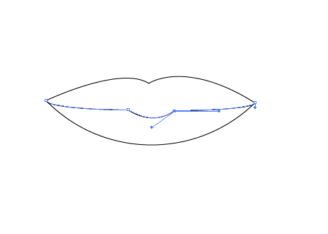 3、使用钢笔工具,点击一下嘴角锚点,然后点击中线,变换成为如图。