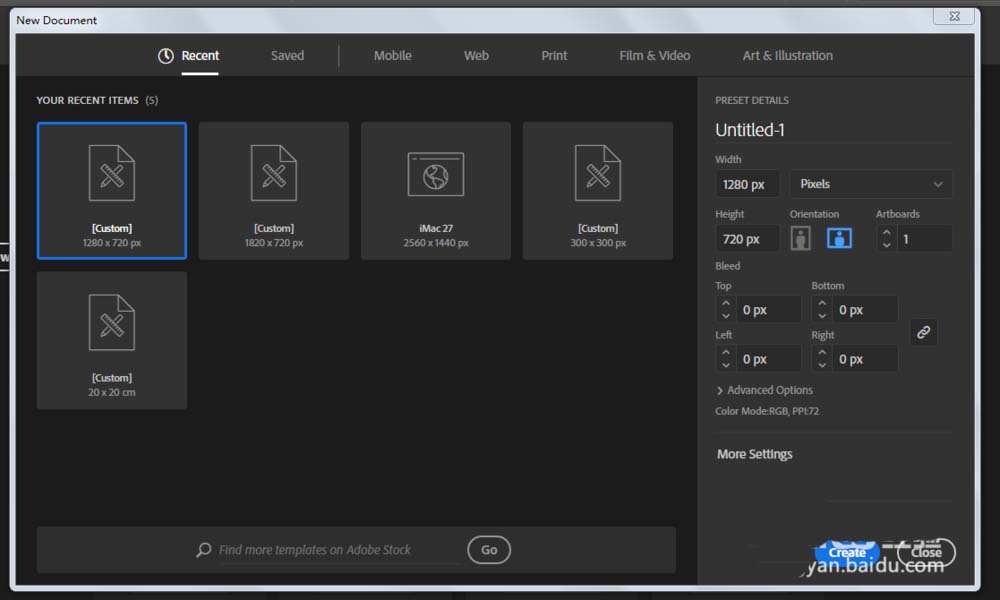 1、新建一个1280*720,颜色模式RGB的文档。