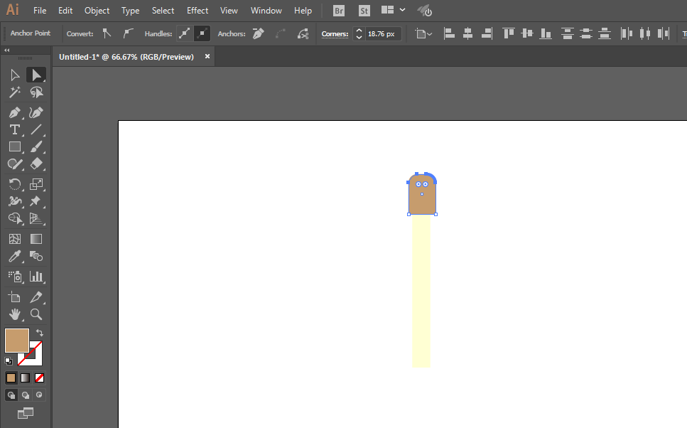 3、绘制一个小的矩形在顶部,直接选择工具拖动锚点。