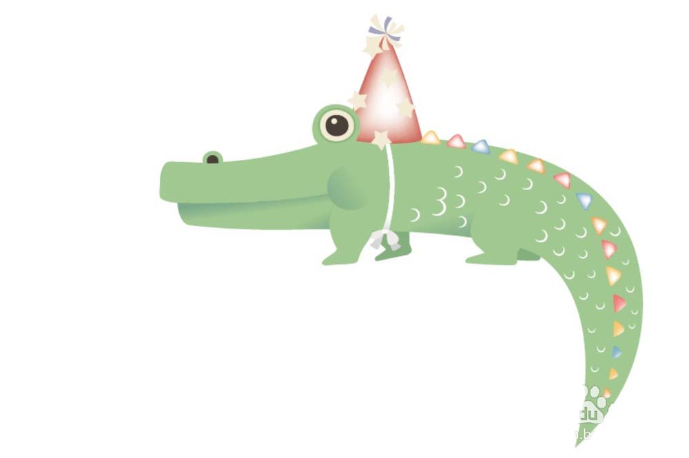 7、选择网格工具,我们给鳄鱼的帽子、背部的鳞片做出背景色到白色的渐变效果,从而完成鳄鱼图片设计。