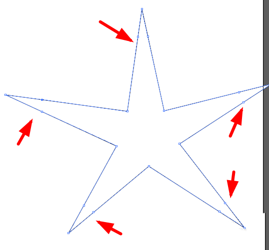 4、然后在每个尖尖的部分添加两个锚点,如图。