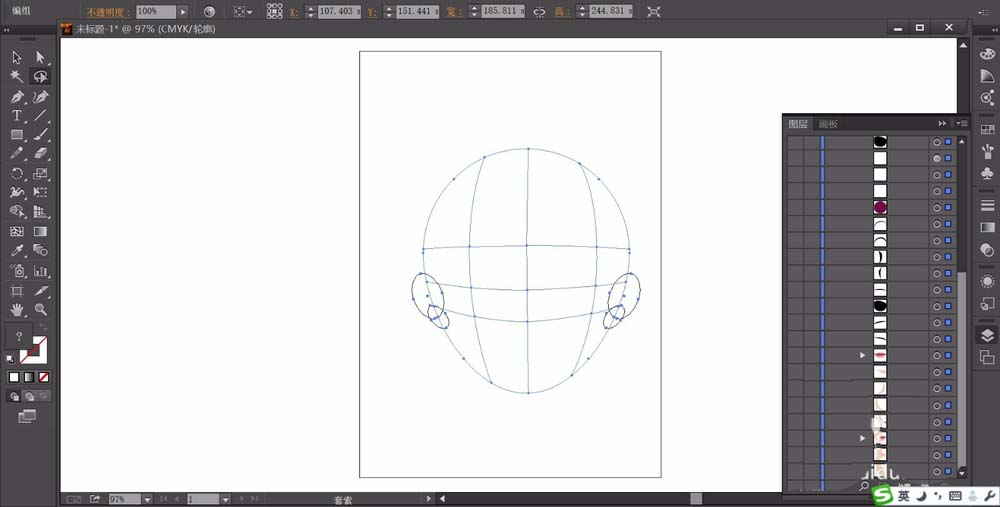 1、先用圆形工具画出女孩的头部轮廓,再画出左右两侧的耳朵的轮廓路径。