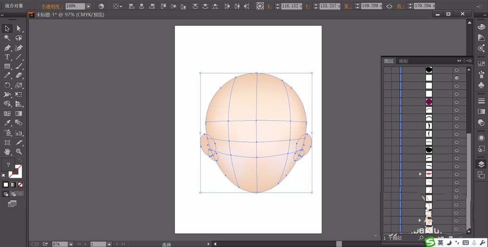 2、我们先用肤色填充头部与耳朵,再用网格工具做出肤色的渐变效果。