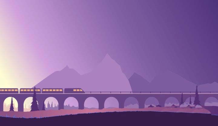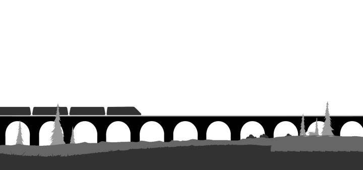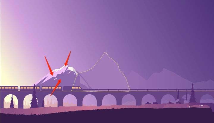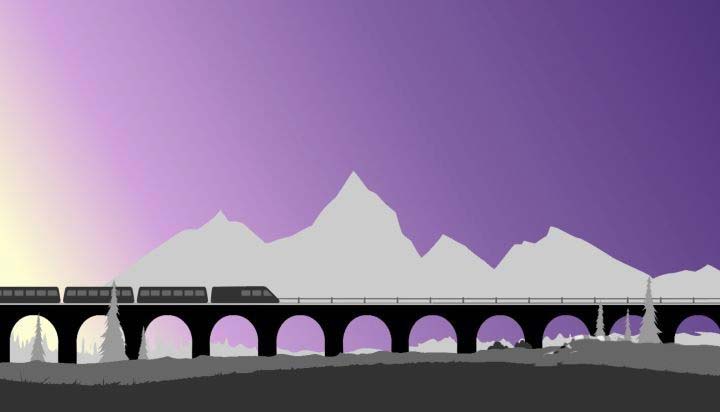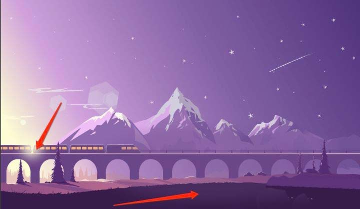 16、然后绘制中景的阴影与亮部,以及复制火车图层,填充浅色,放置原图层的下放作为火车边缘的高光