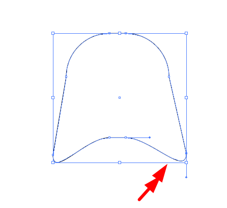 4、直接选择工具,点击侧边的锚点往下拉,如图。