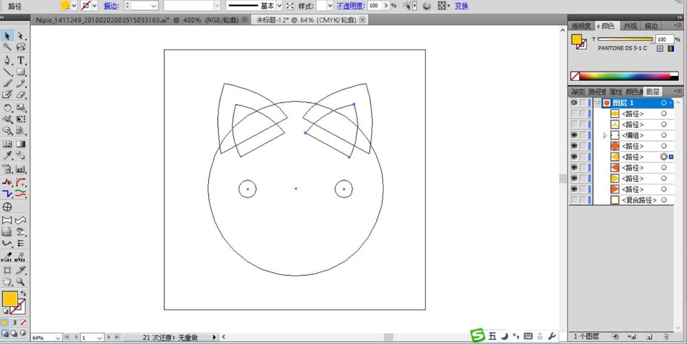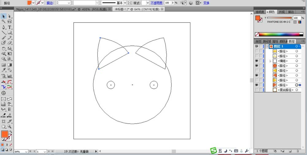 4、复制耳朵的路径并缩小到70%左右,我们画出耳朵的内部结构路径。