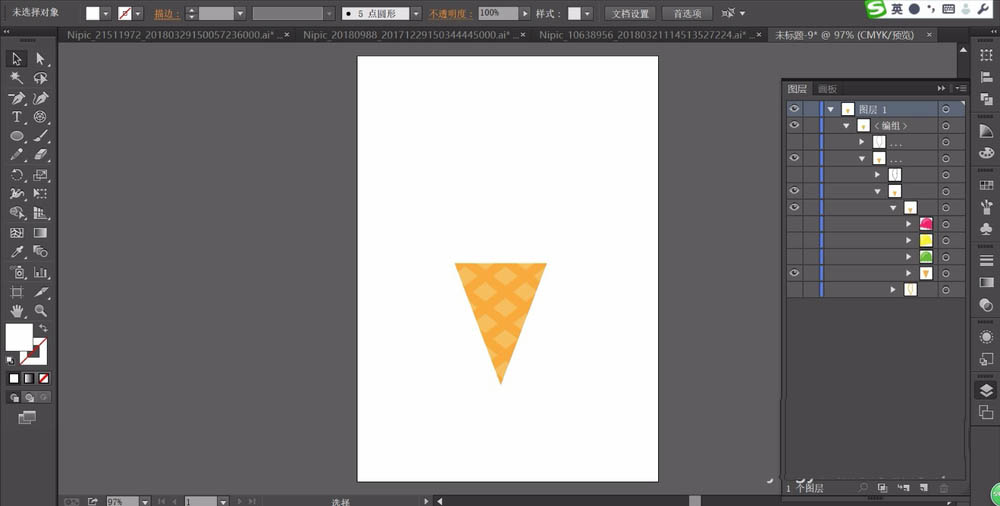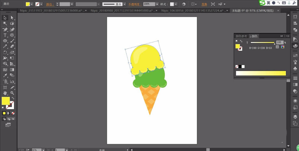 ai中想要绘制彩色的冰淇淋,该怎么红色、黄色、绿色搭配打造冰激凌呢?下面我们就来看看ai绘制冰淇淋标志的教程。
