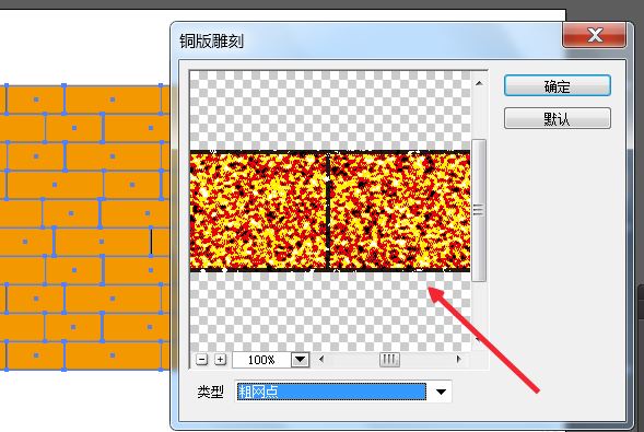 8、全选,找到效果-像素化-铜版雕刻,设置如图,点击确定。