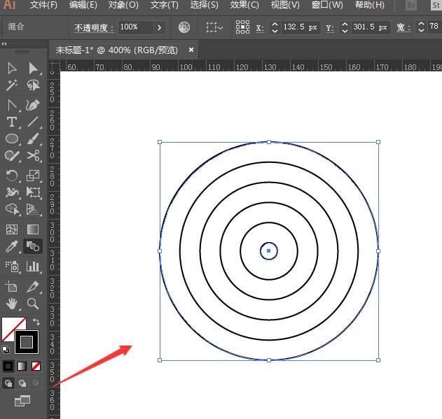 1、在ai文件中,先做出一个圆圈状图形,如图