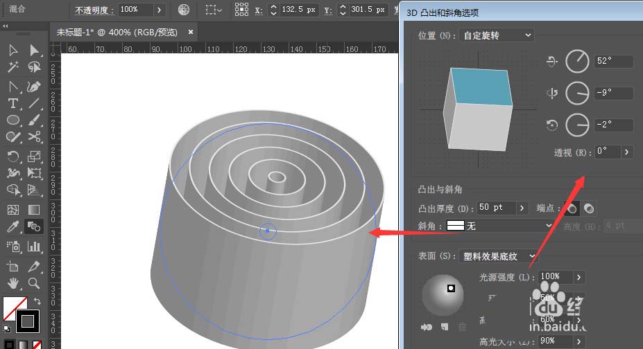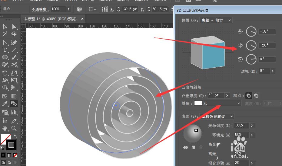 5、根据自己的需要调整方向和高光效果,以及图形高度