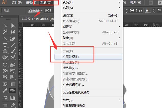 6、最后如果想要做成实样的图形,需要打开对象的扩展外观,将其实体化
