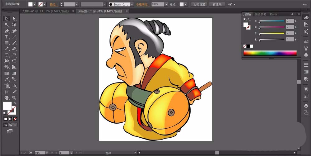 7、使用橙黄色与橙红色搭配完成人物的服饰所有的路径填充,使用网格工具点击一下所有的高光区域,完成前景色的渐变效果,铁锤将图片设计完成!