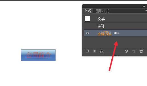 7、然后在外观面板里设置文字的不透明度,如图。