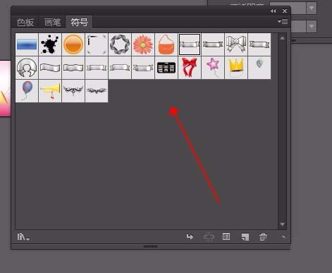 3、然后调出符号面板,添加进去我们制作店招需要的各种元素,可以从符号库里选择,也可以自己导入。如图。