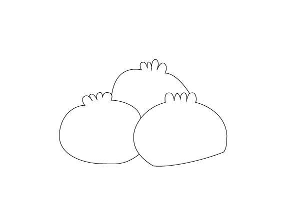 2、设置好之后我们使用钢笔工具在绘图去里面绘制出三个包子的轮廓图形,如图所示: