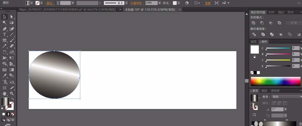 2、我们用灰白色的线性渐变填充圆形作为话筒的头部形状。灰到白再到灰的渐变,角度在75度左右。