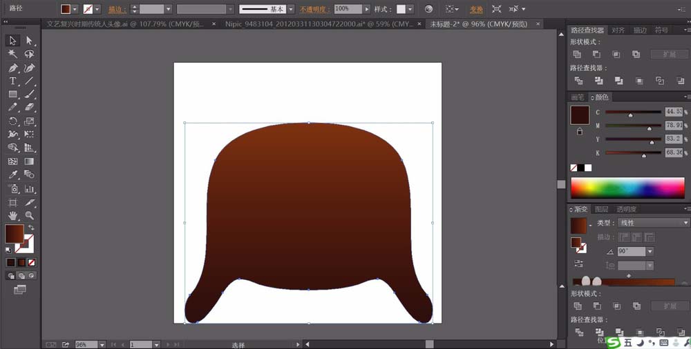 1、首先,我们用钢笔画出这个帽子的基本轮廓,我们用咖啡色的渐变填充一下这个帽子的路径。