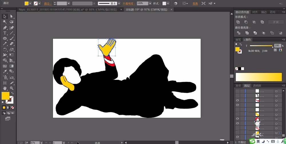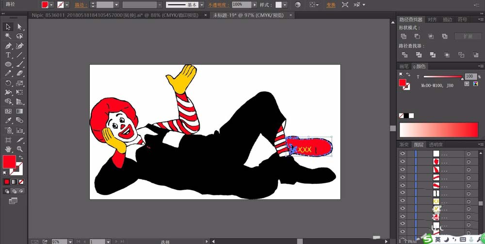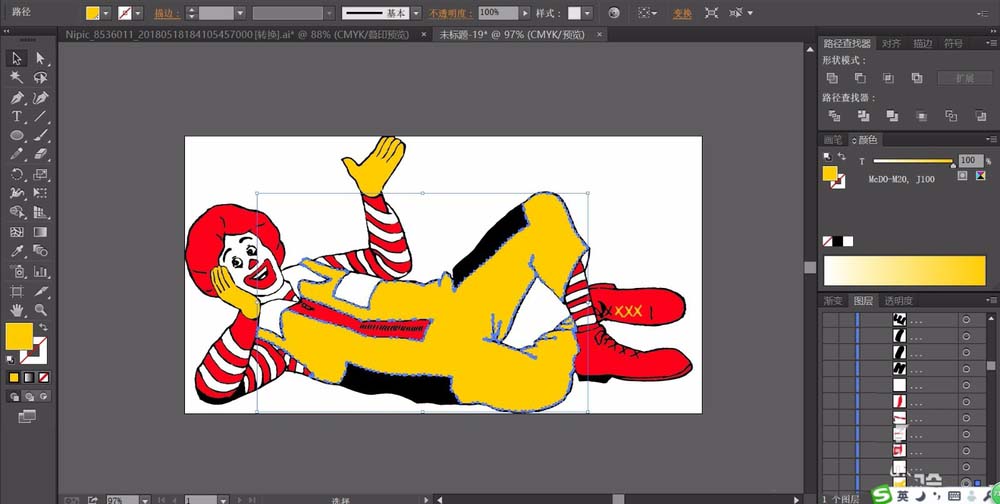 ai中想要画一个小丑矢量图,很喜欢小丑,该怎么绘制小丑矢量图呢?下面我们就来看看详细的教程,从中学习一下人物的动作与服饰的画法,还有黄色与红色的搭配方法。