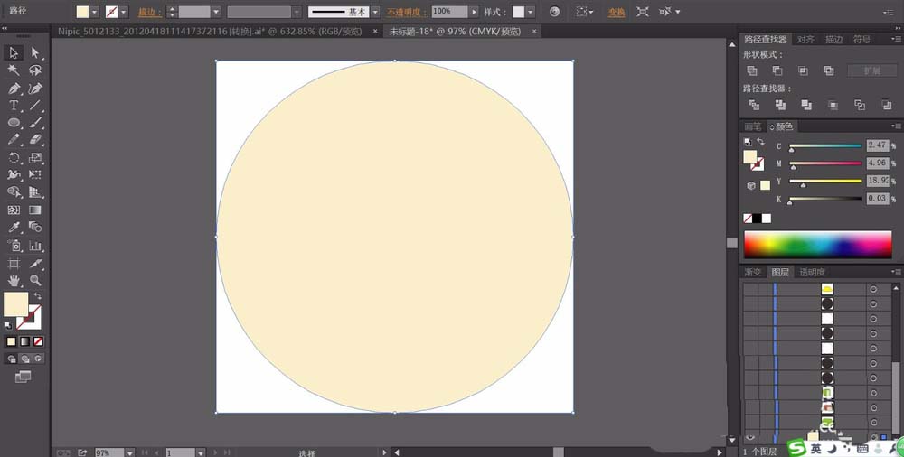 1、先用矢量圆画出背景并填充一个米黄色。这个圆形为正圆形,我们可以按住shift键用圆形工具画出来。