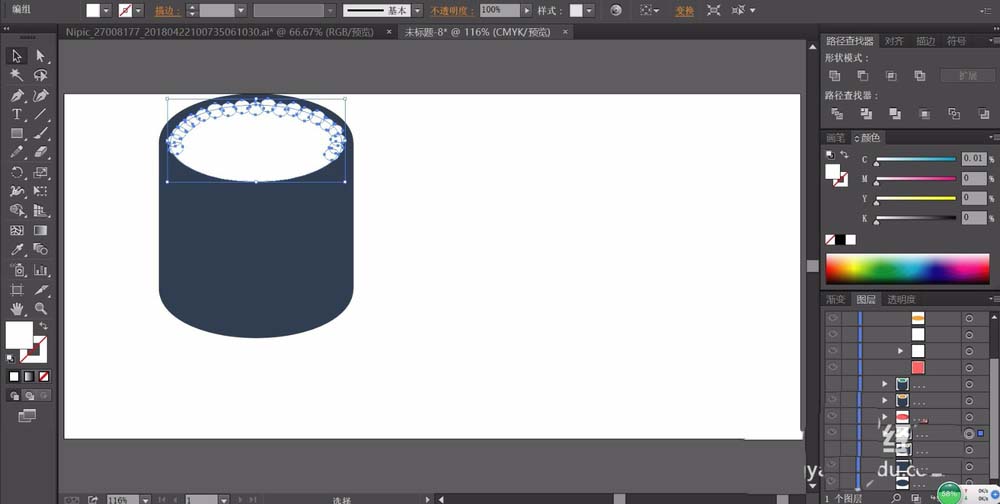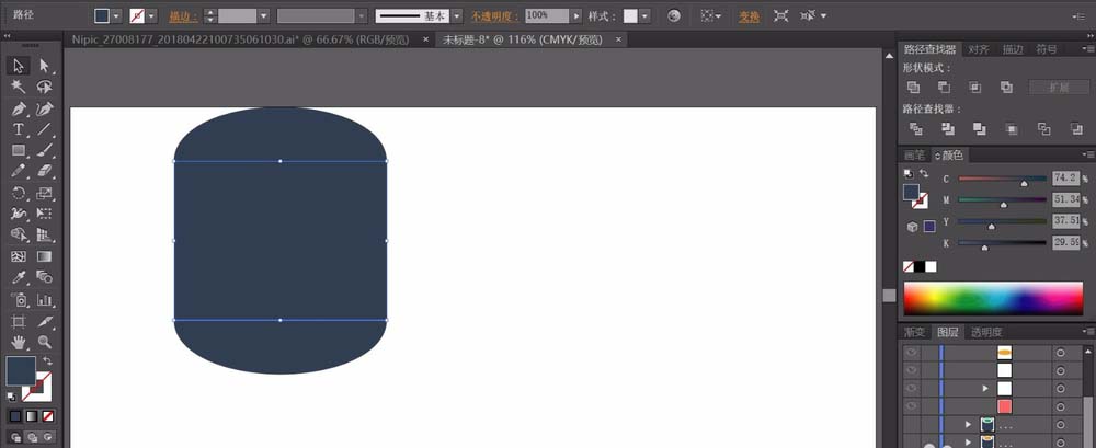 2、使用不同的蓝黑色来填充这个圆柱的正面矩形与两个圆形。