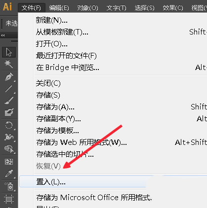 2、点击文件-置入,不要选择打开,如图。