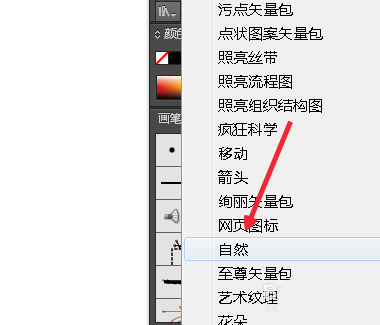 3、点击符号库,从弹出菜单里中点击自然,如图。